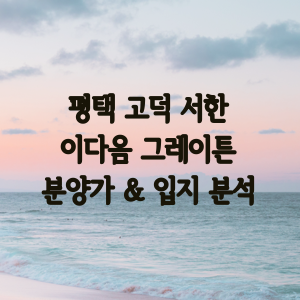 평택 고덕 서한이다음 그레이튼은 우수한 입지와 적정 수준의 분양가, 일정 수준의 안전 마진 등 투자 매력이 있는 단지로 보입니다. 다만 청약 경쟁이 치열할 것으로 예상되므로, 청약 준비를 철저히 해야 할 것 같습니다.